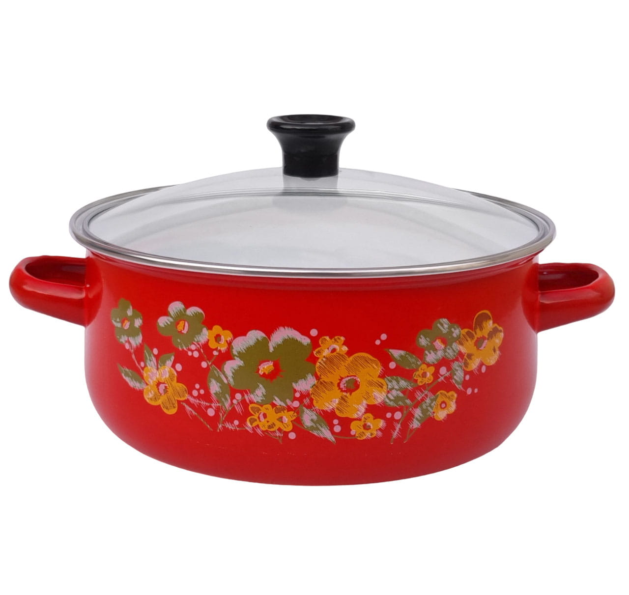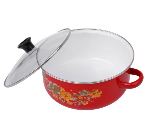 Emaillierte Beschichtung an der Außenseite und Innenseite des Topfes.