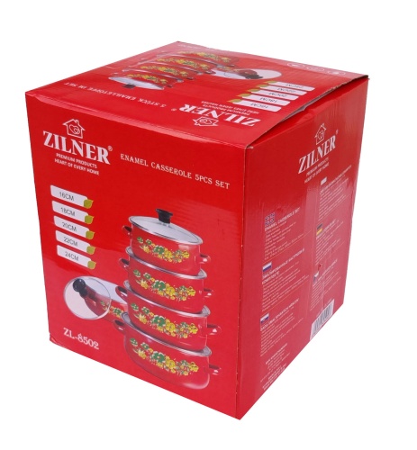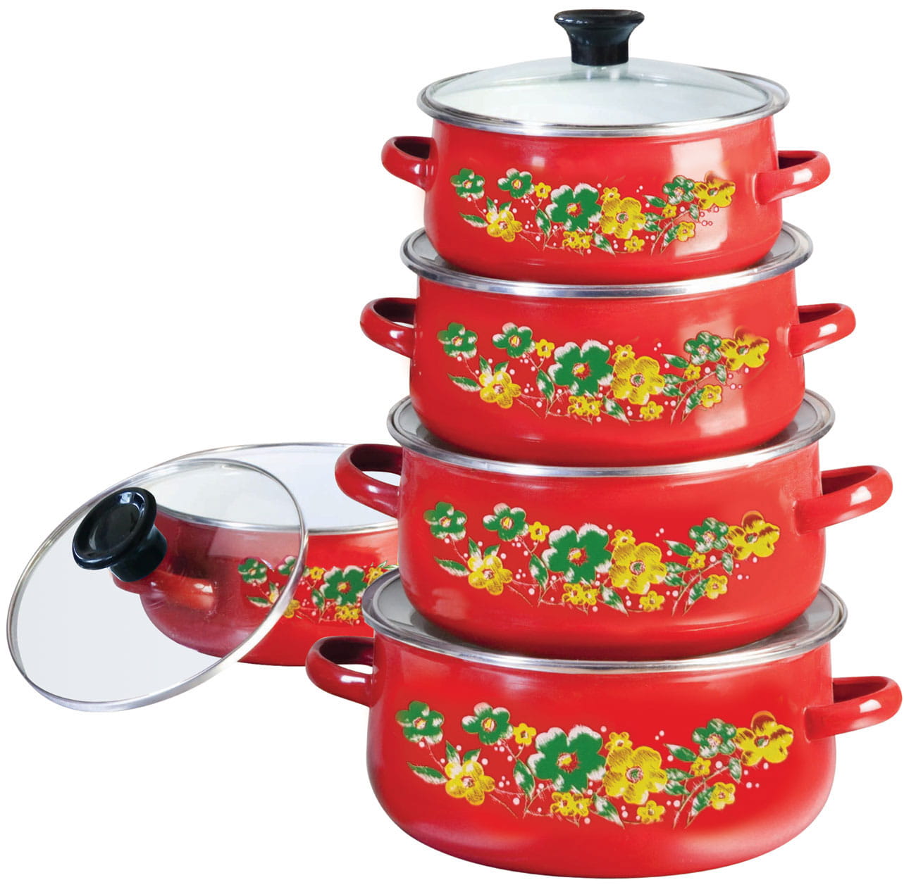 10-Tlg Emaille Topfset mit Glasdeckel Emailetöpfe Emaillierte Töpfset ZILNER ZL-8502-RD