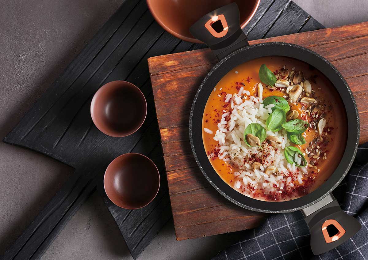 Kompozycja aluminiowego korpusu i ferromagnetycznego dna umożliwia użytkowanie na kuchni indukcyjnej oraz na wszystkich innych rodzajach kuchni i wykorzystywania najlepszych właściwości akutermicznych odlewanego i kutego aluminium na wszystkich kuchenkach i płytach grzewczych. Możliwość gotowania/smażenia w temperaturze do 220°C.
