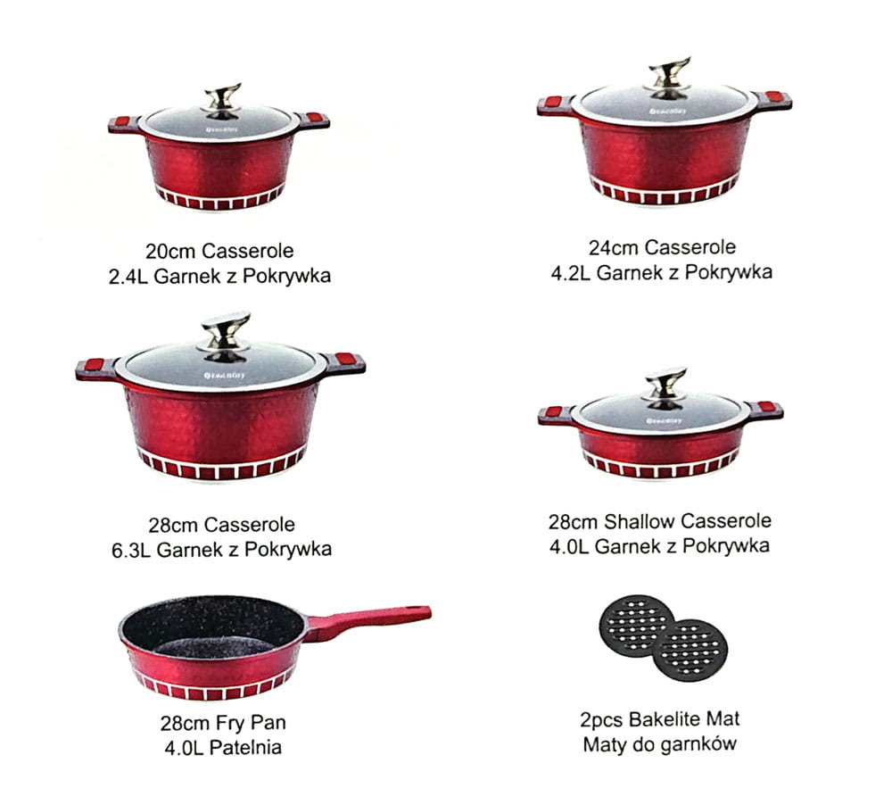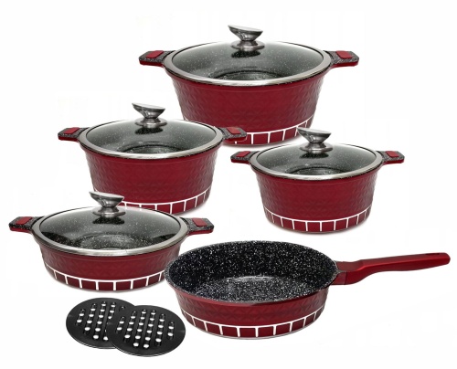 11-teiliger Topfset Marmorkeramikbeschichtet ZILNER ZL-8512 Burgund