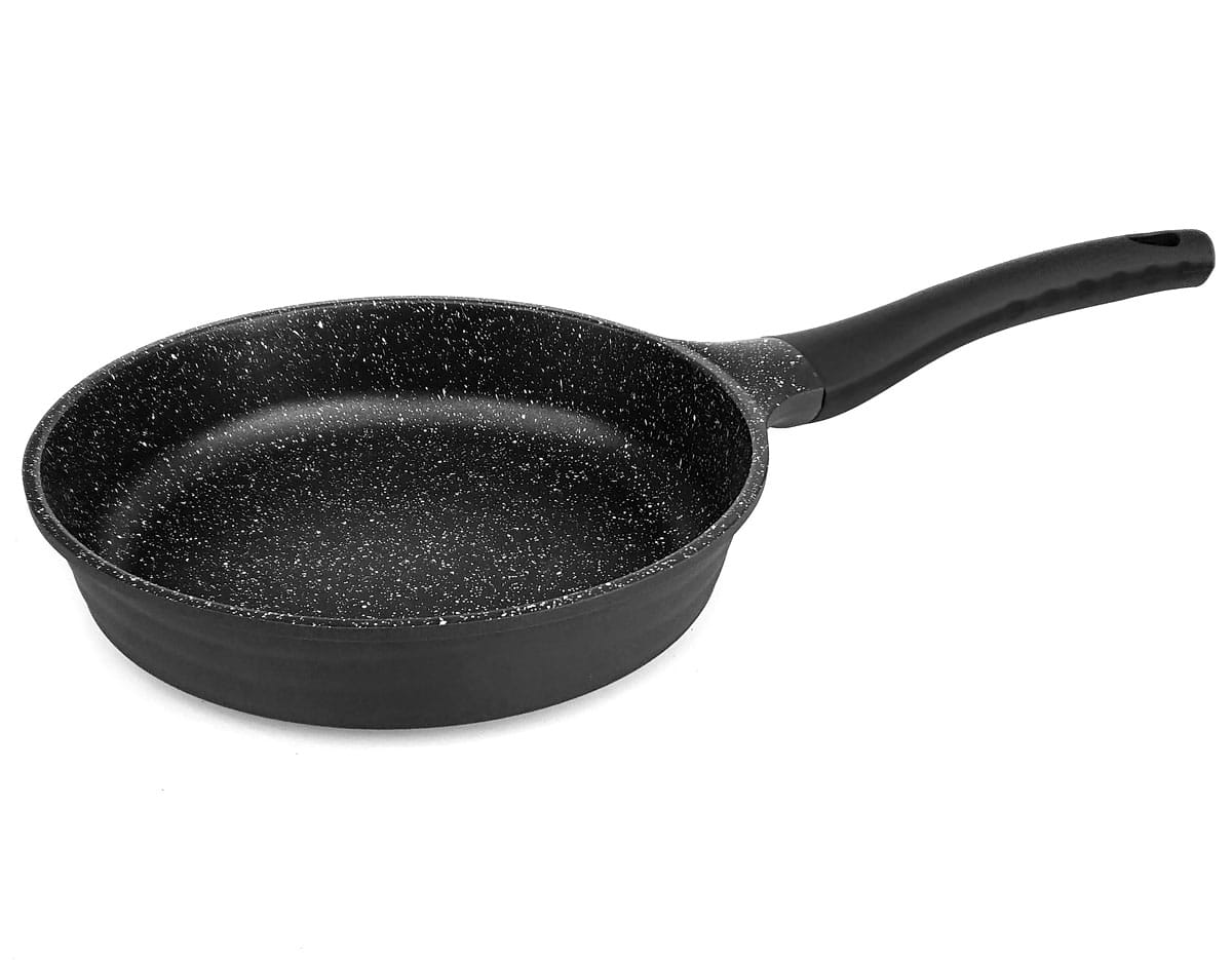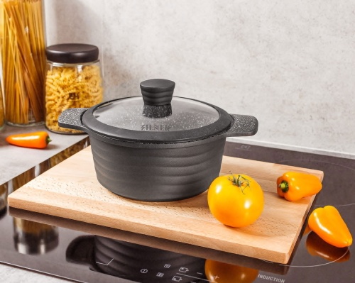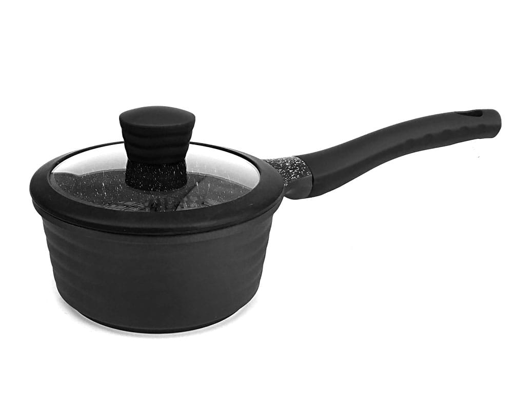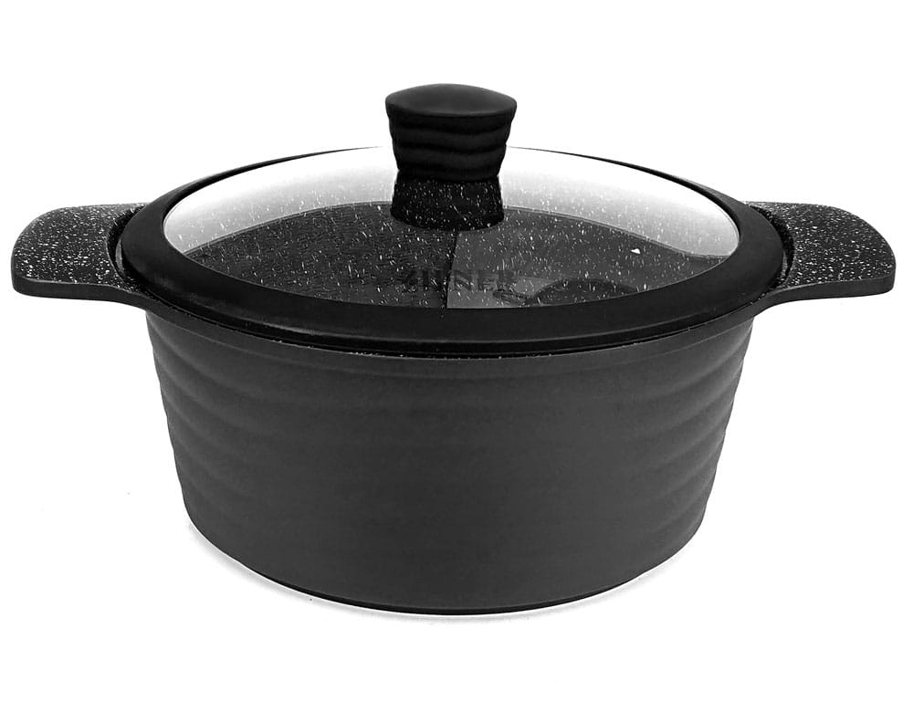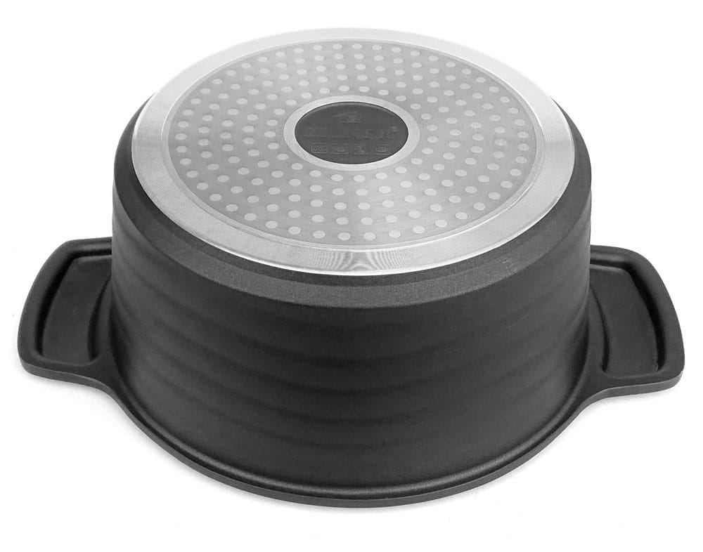 Marmorbeschichtung gibt eine größere Härte. Das Töpfematerial ist härter als Teflon,