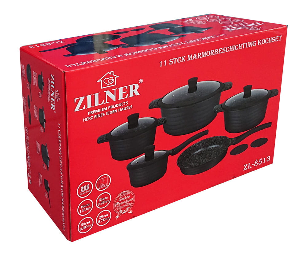 11-tlg Topfset Kochtopfset mit Marmorbeschichtung ZILNER ZL-8513