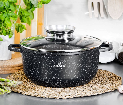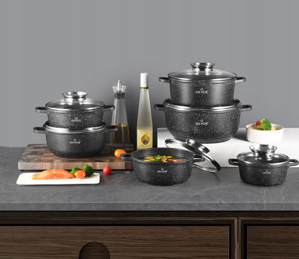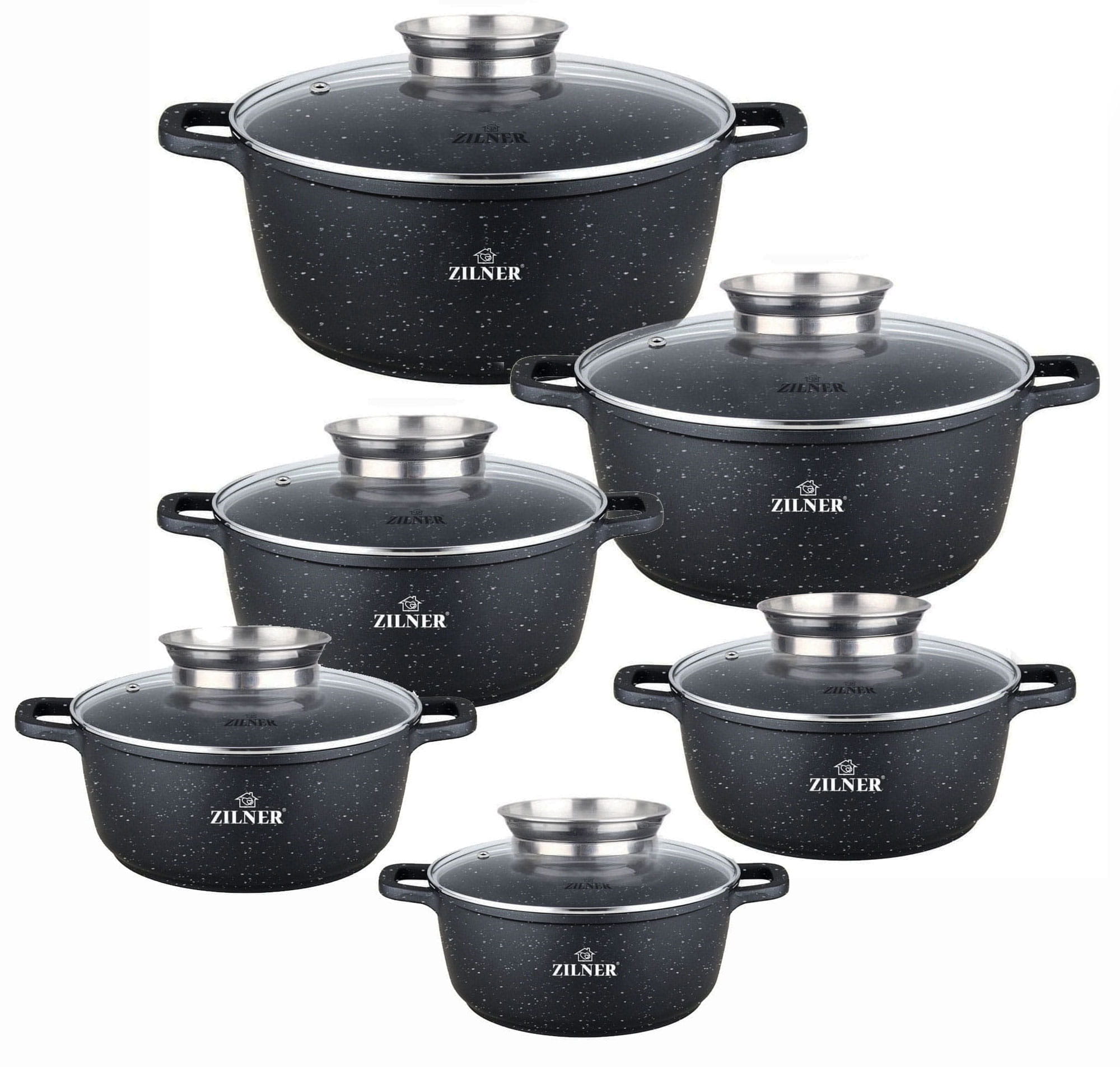 12-Tlg Marmor Töpfset mit Glasdeckel Kochtopf-Set Marmorbeschichtung ZILNER ZL-8526