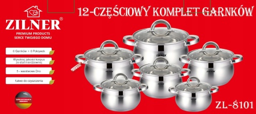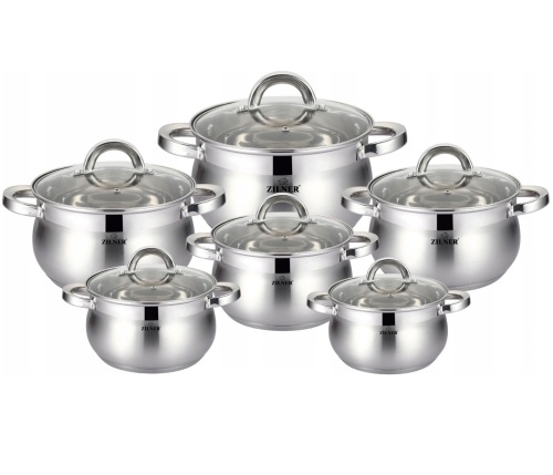 12-teiliges ZILNER Stahltopf-Set aus rostfreiem Stahl.