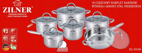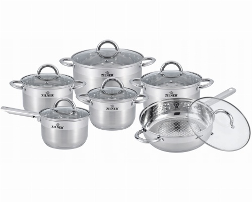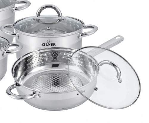 12-teiliges ZILNER Stahltopf-Set aus rostfreiem Stahl.