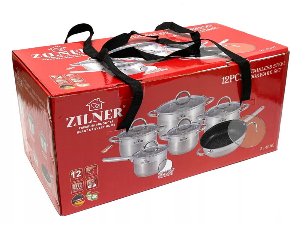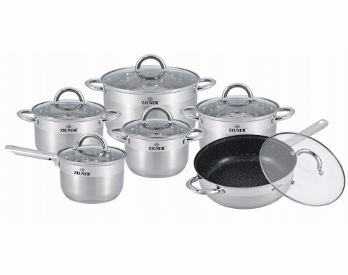 12-teiliges ZILNER Stahltopf-Set aus rostfreiem Stahl.