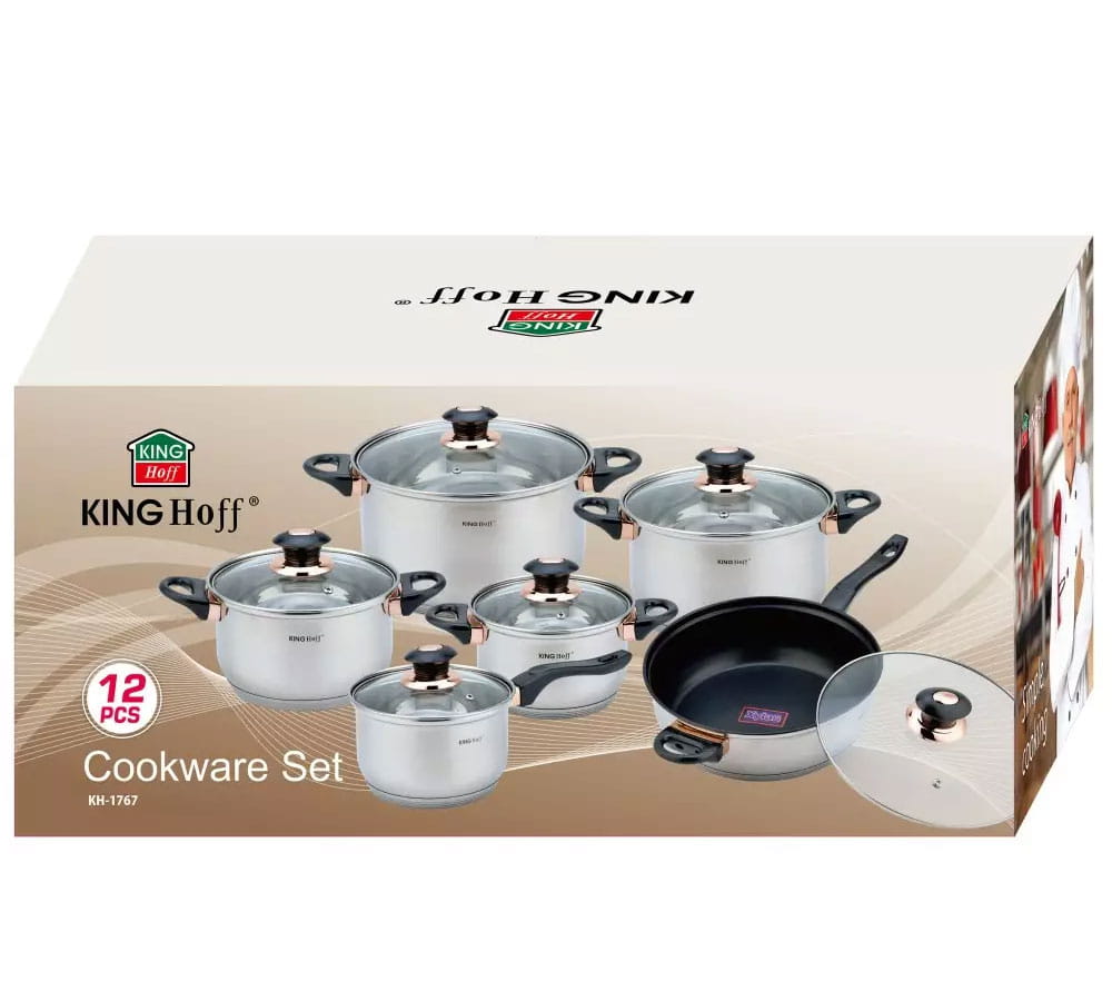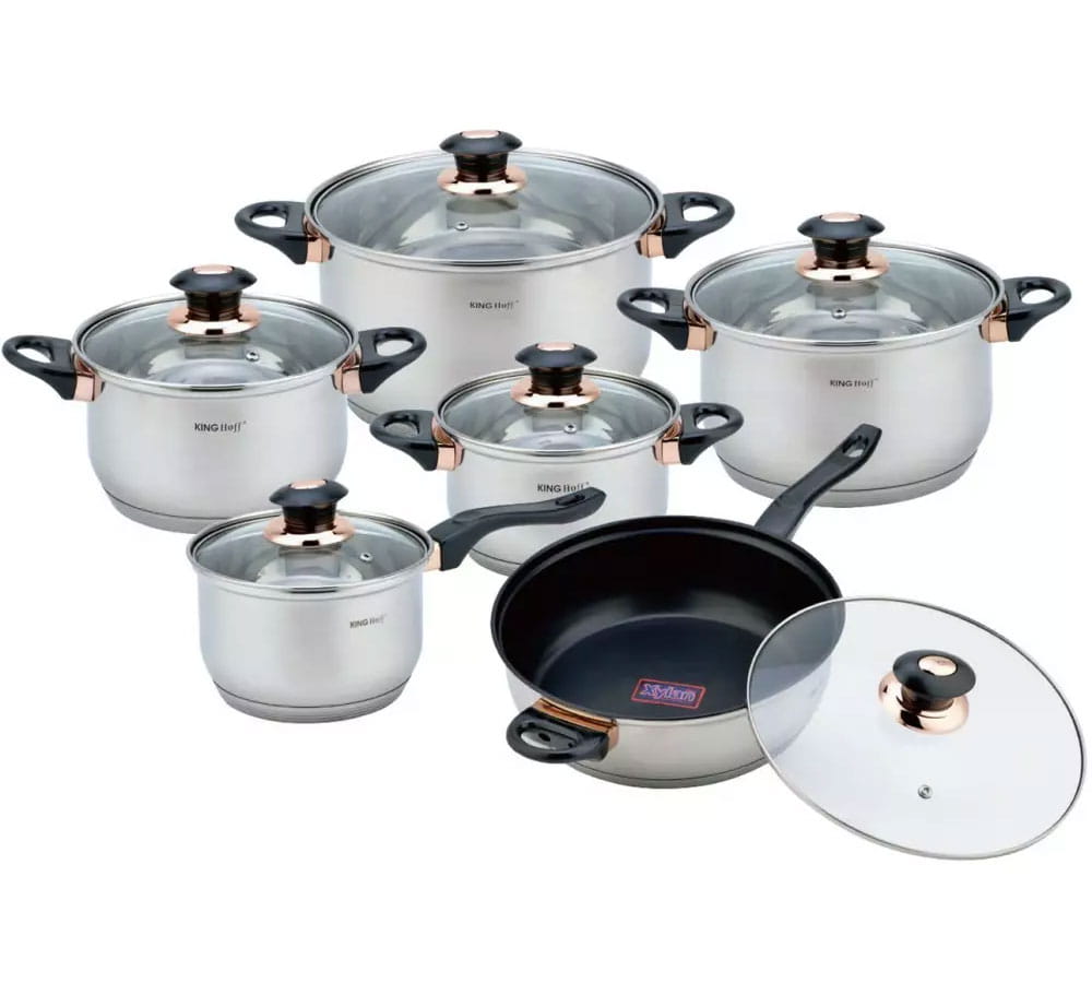 12-teilig Edelstahl Topfset mit Deckel 2.1L bis 6.5L und Teflon Pfanne von KINGHOFF