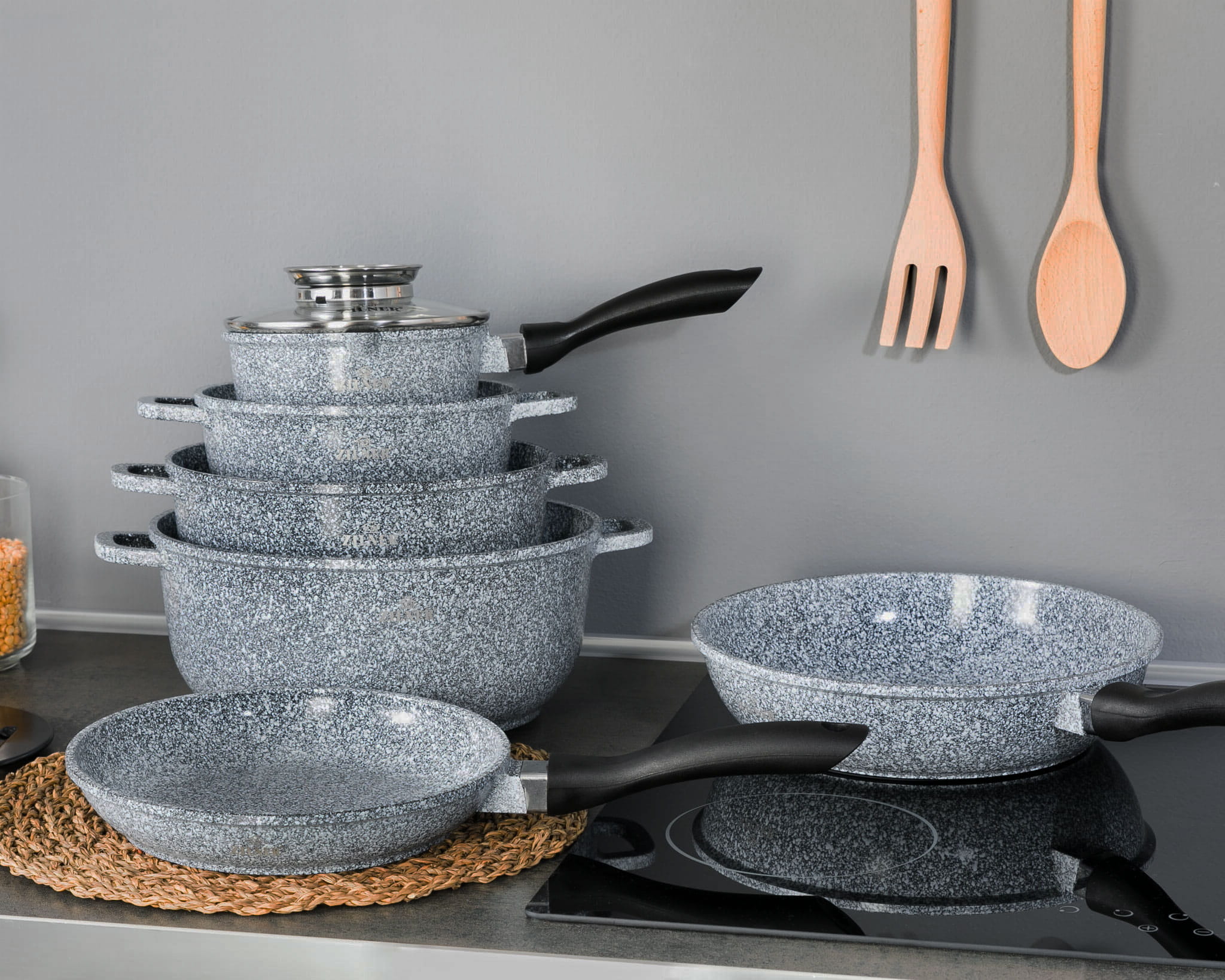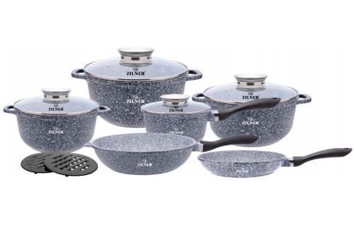 Komplet garnków 12 ele. ZILNER pokrytych marmurową ceramiczną powłoką nieprzywierającą.