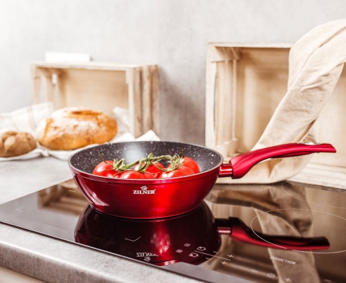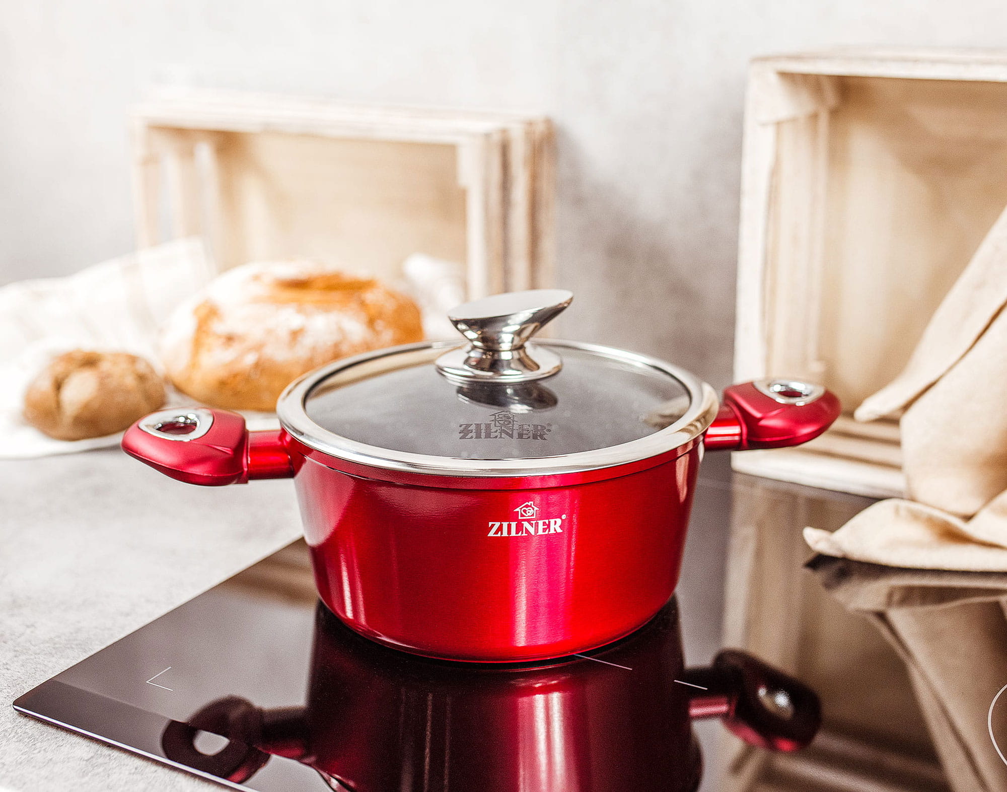 15-teiliges Marmorbeschichtet Kochtopfset Topfset Geshirrset ZILNER Cherry Red ZL-8591
