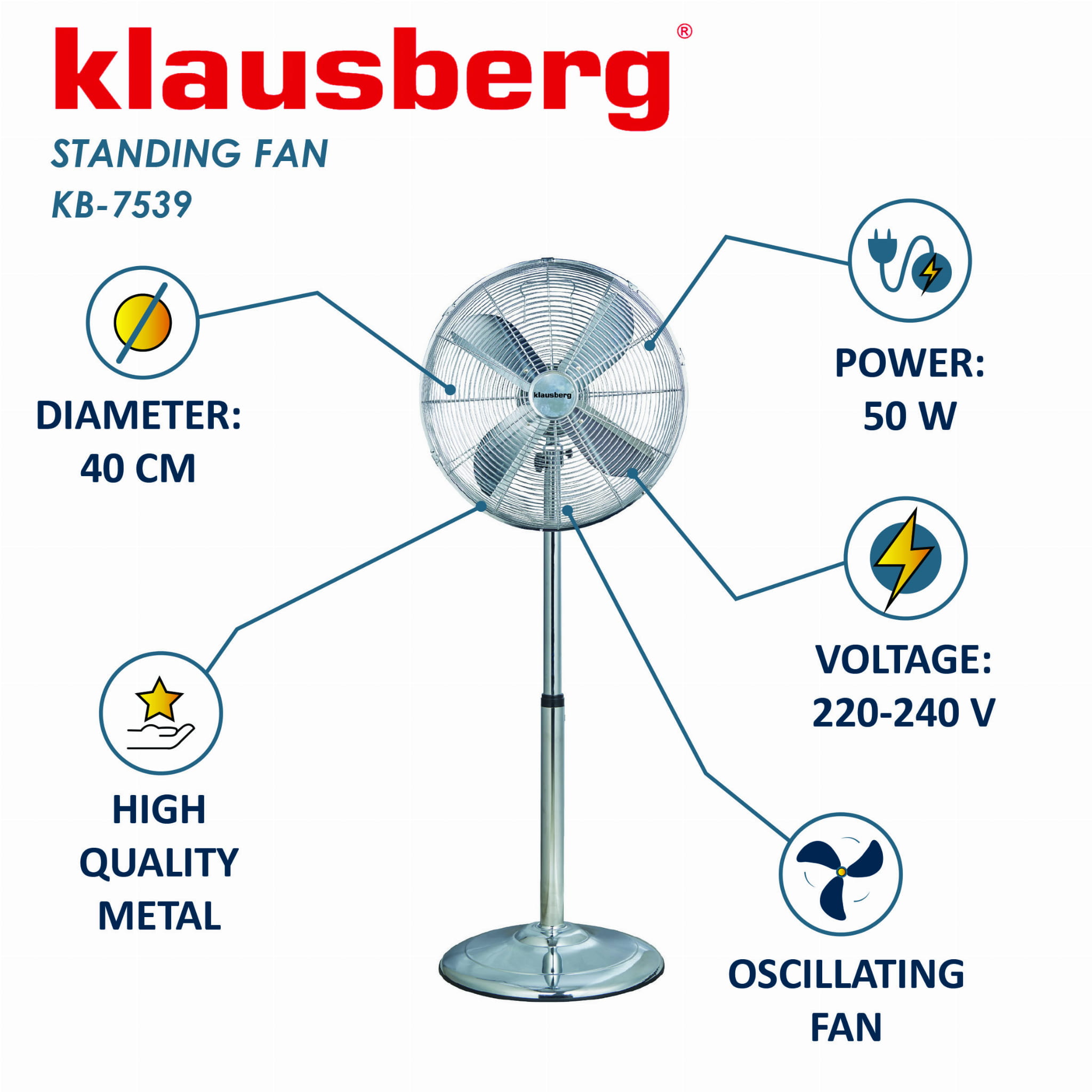 16-Zoll Metall Standlüfter 40cm 50W KLAUSBERG KB-7539