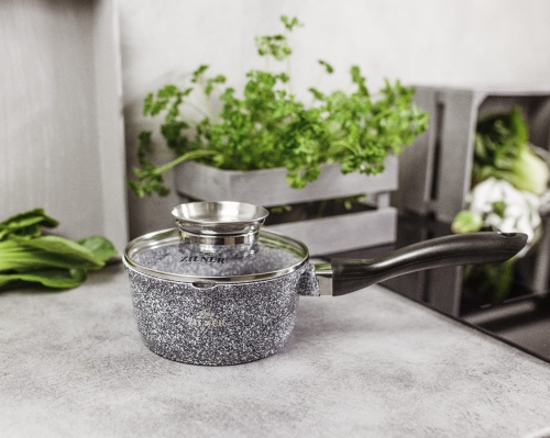 Marmor/ Granitbeschichtung gibt eine größere Härte. Das Töpfematerial ist härter als Teflon,