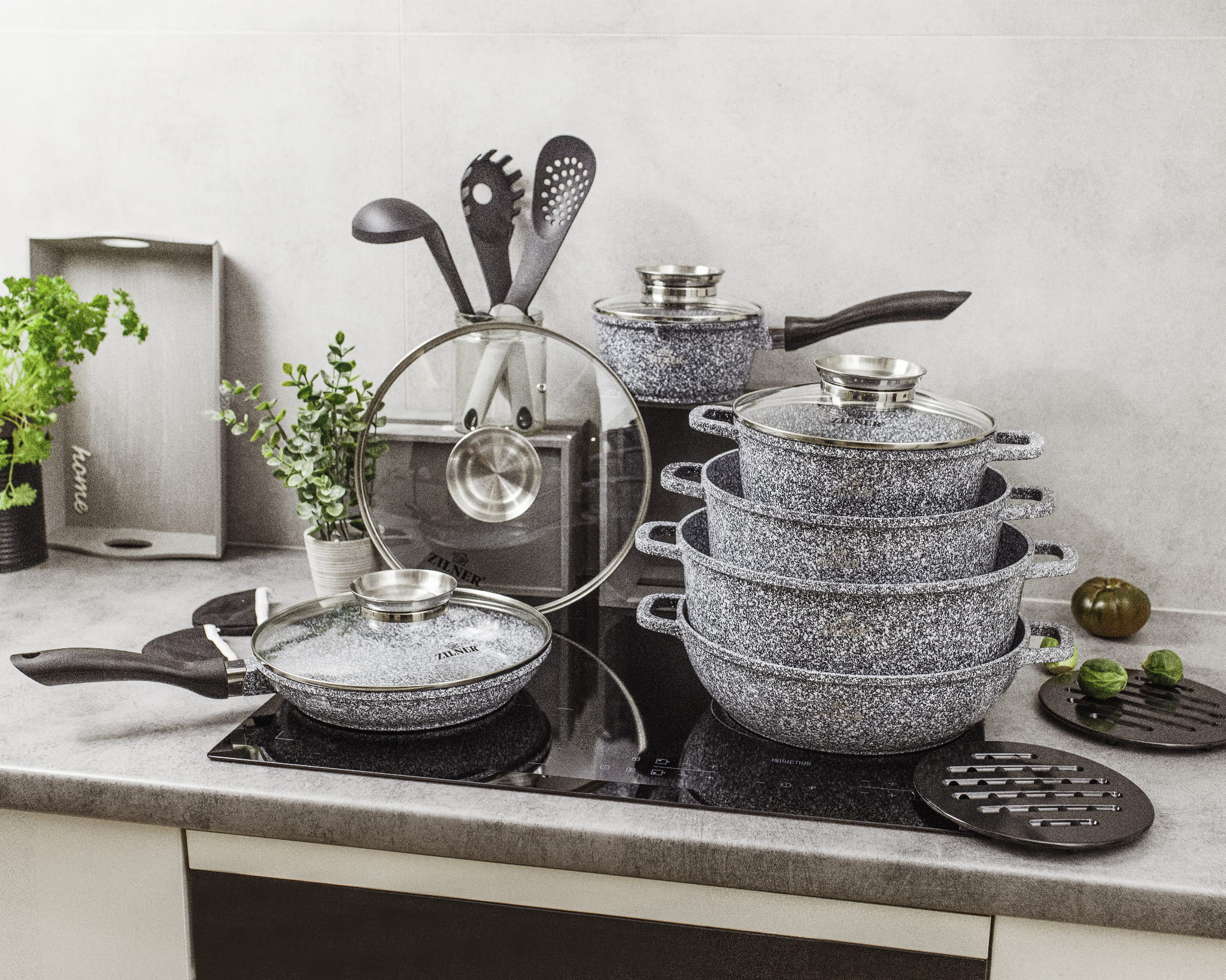 17-tlg Antihaftbeschichtet Kochtopfset Topfset Geschirset Marmorbeschichtung ZILNER ZL-7060