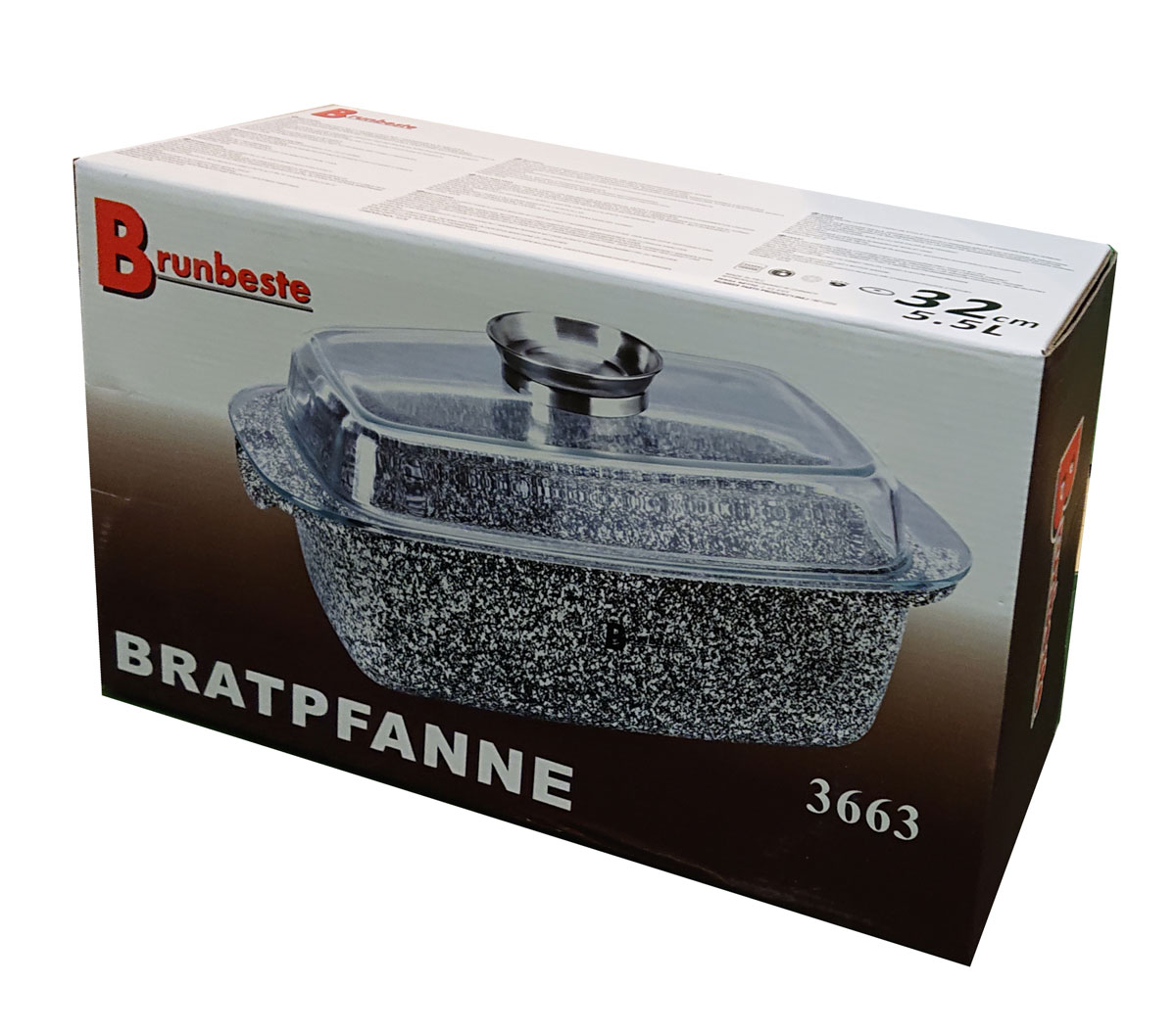 2-tlg Röster Bräter mit Antihaftbeschichtung aus Marmor 5.5L 32cm BRUNBESTE BB-1905