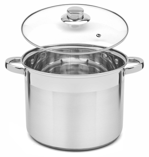 Edelstahl TADAR 20L Gastronomie-Topf zum Kochen auf Elektro-, Induktions-, Keramik- und Gasherden. Seine Konstruktion unterstützt die Geschwindigkeit der Temperaturaufnahme und verwaltet die Wärme gleichmäßig. Es ist für den häuslichen und beruflichen Gebrauch geeignet.