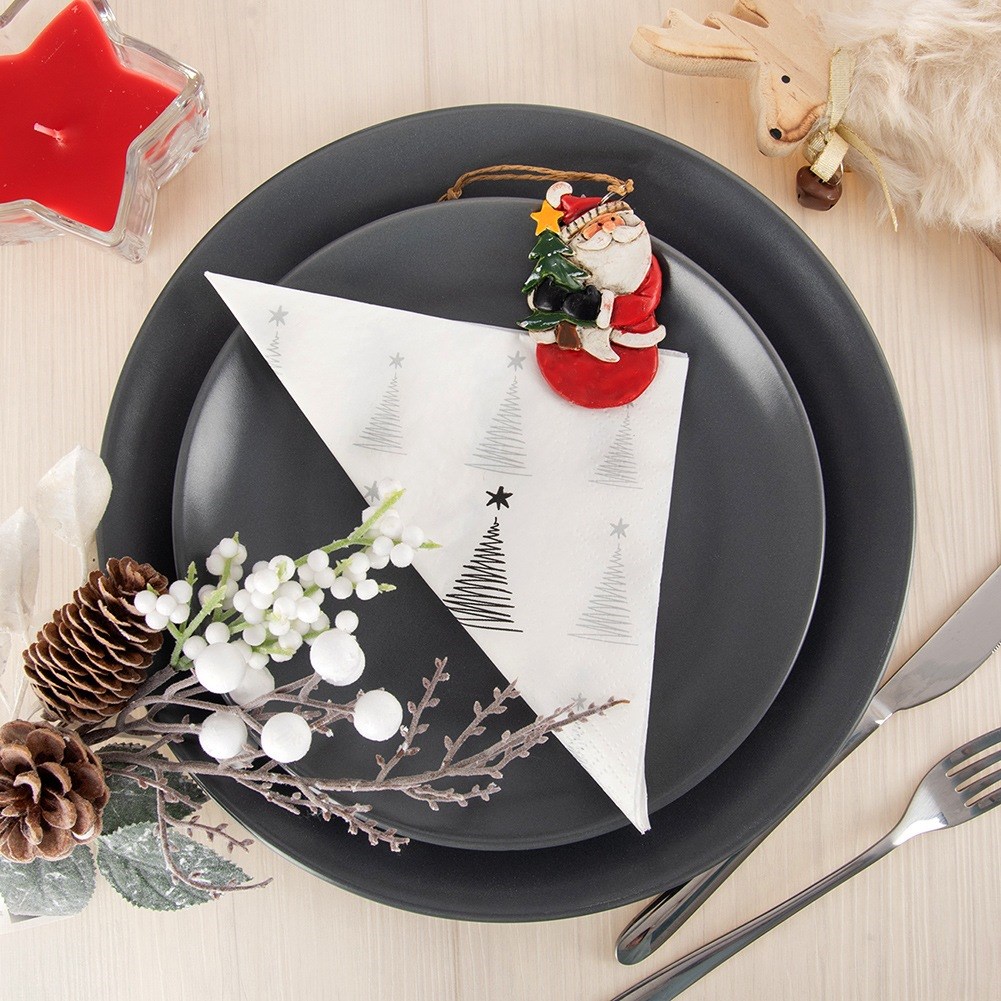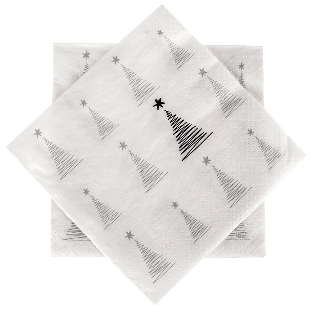 - Festliches Weihnachtsbaummotiv- Hergestellt aus weißem Papier mit einem eleganten silbernen Weihnachtsbaumaufdruck, der eine warme, festliche Atmosphäre auf Ihren Tisch bringt.