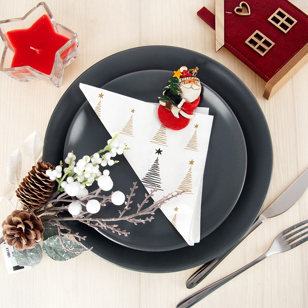 - Festliches Weihnachtsbaummotiv- Hergestellt aus weißem Papier mit einem eleganten goldenen Weihnachtsbaumaufdruck, der eine warme, festliche Atmosphäre auf Ihren Tisch bringt.