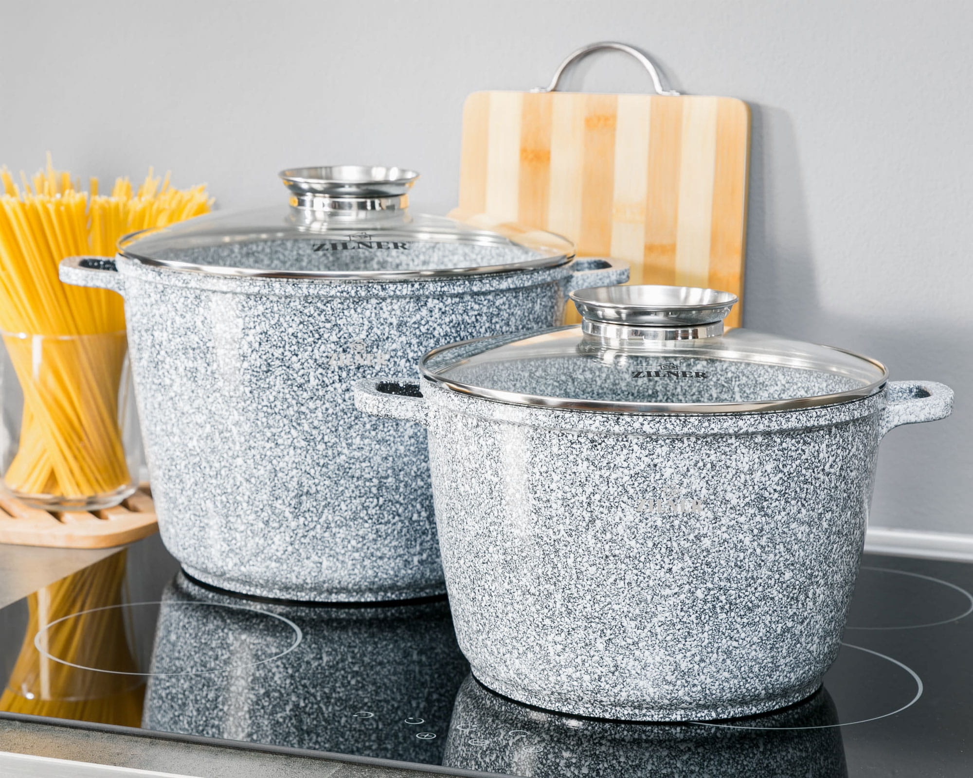 4-tlg Marmor Töpfset 10L + 6.2L mit Glasdeckel Kochtopf-Set Marmorbeschichtung ZILNER ZL-7066
