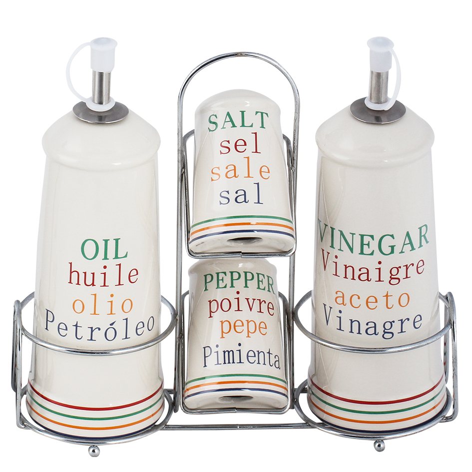 Aufbewahrung für Essig, Pfeffer, Salz, Öl.