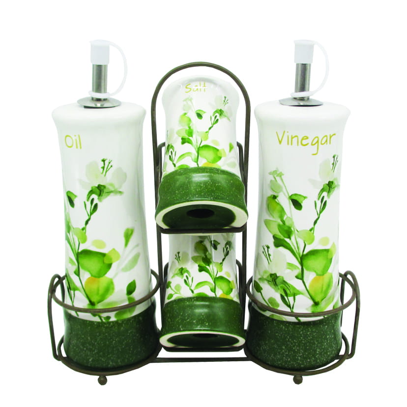 Aufbewahrung für Essig, Pfeffer, Salz, Öl.