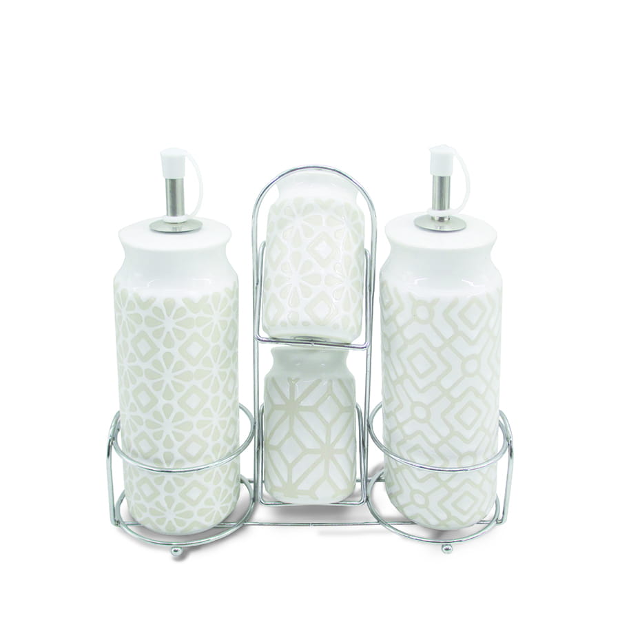 Aufbewahrung für Essig, Pfeffer, Salz, Öl.