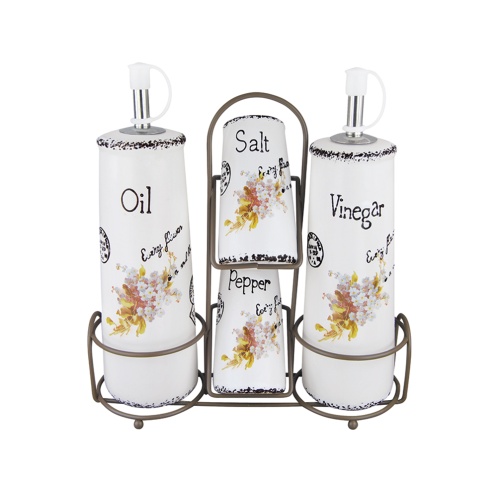 Aufbewahrung für Essig, Pfeffer, Salz, Öl.