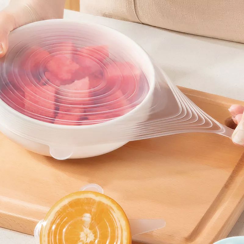 6-teiliges Set aus dehnbaren Silikon-Abdeckungen zur Lebensmittelaufbewahrung
