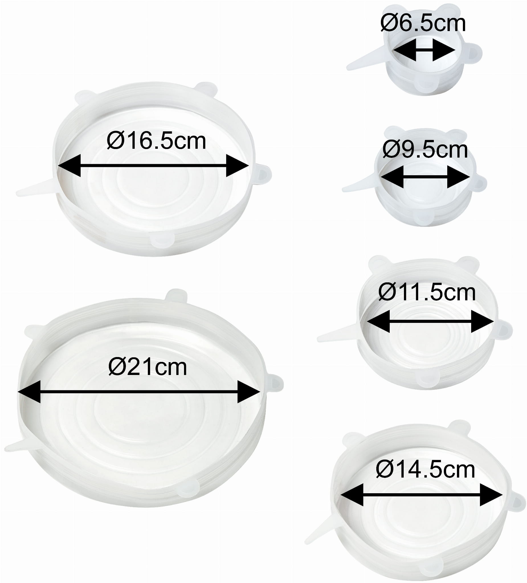 Größen: 6.5, 9.5, 11.5, 14.5, 16.5, 21cm.