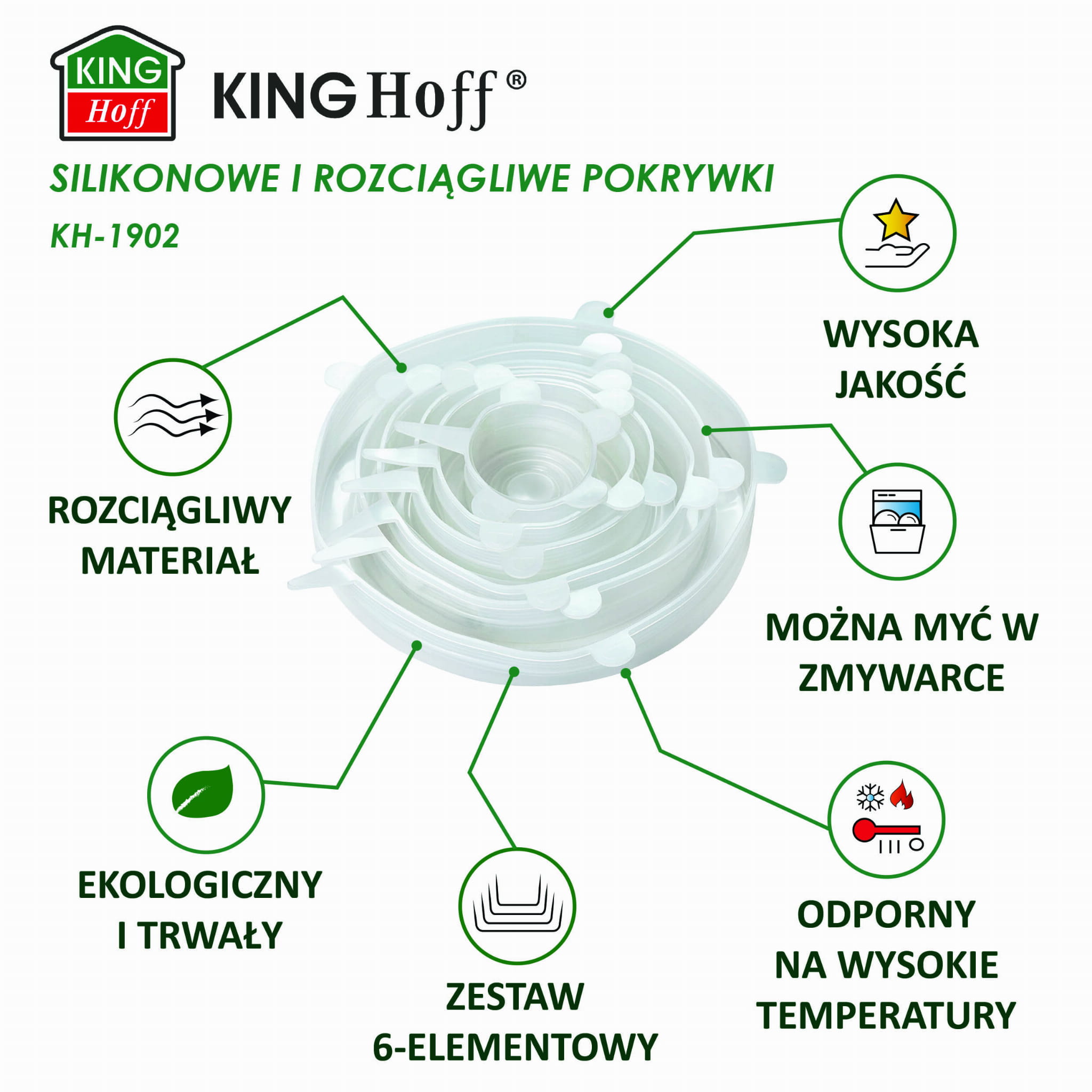 6-teiliger Silikon-Stretch-Deckel-Satz KINGHOFF KH-1902