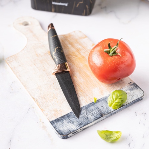 Dank der Verwendung einer Antihaftbeschichtung auf den Klingen wird die Verwendung dieser Messer einfach und angenehm, und die Reinigung erfolgt schnell und effektiv. Die komfortablen Griffe bieten einen sicheren Halt während der Nutzung, was die Arbeit in der Küche noch angenehmer macht.