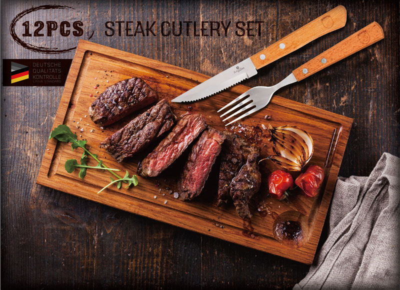 Die gezahnten Klingen von hervorragender Qualität ermöglichen es Ihnen, das Fleisch mit Sicherheit zu schneiden und der hölzerne, gut geformte Griff bietet einen festen und starken Griff.