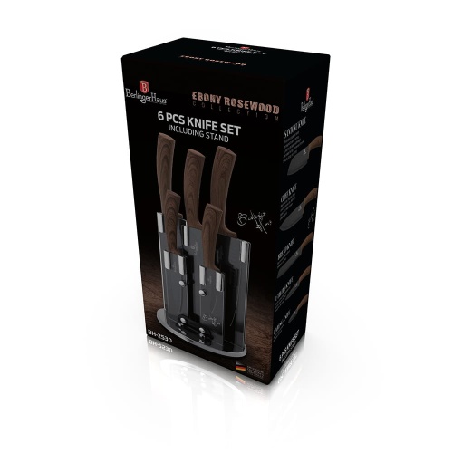 Zestaw noży na stojaku 6 elementów firmy BERLINGER HAUS z serii EBONY ROSEWOOD.