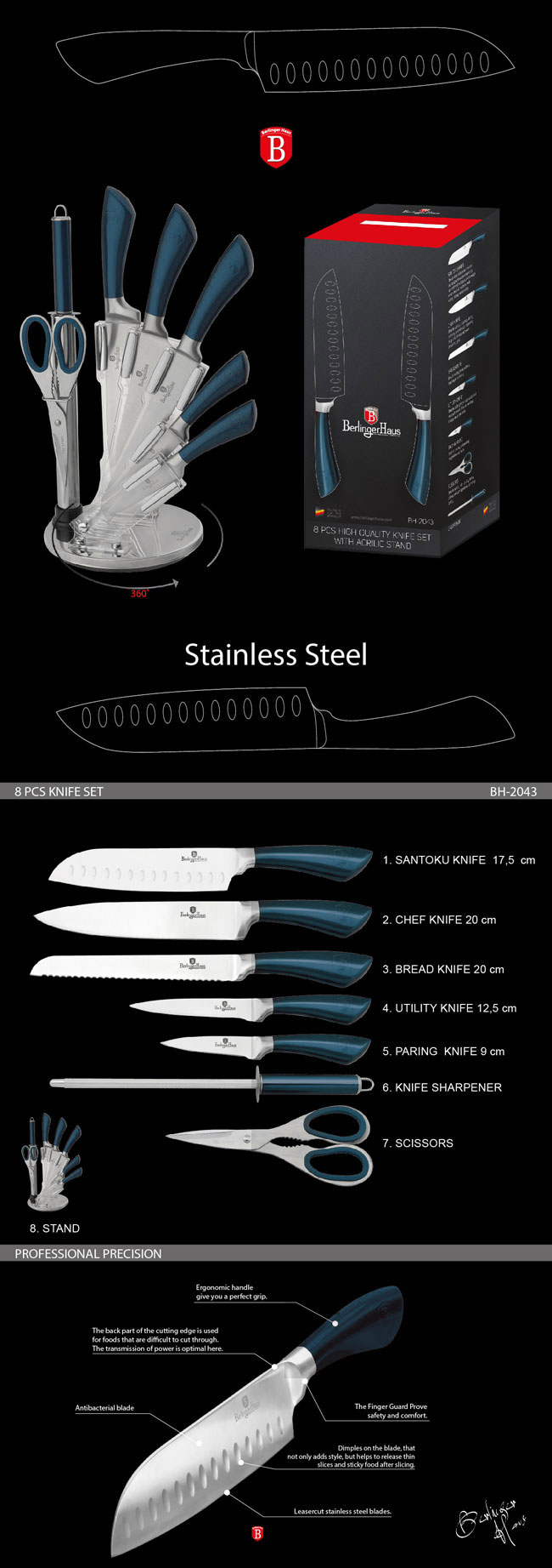8-teiliges Messerset Messerblock Edelstahl BERLINGER HAUS Infinity Aquamarine BH-2415