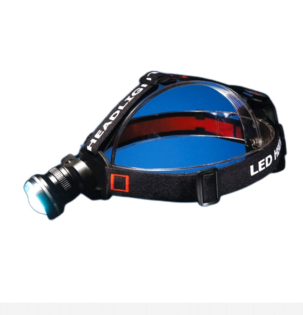 Eine handliche Stirnlampe mit einer leistungsstarken 9-W-CREE-T6-XML-Glühbirne strahlt starkes Licht aus, perfekt für Arbeiten im Freien bei Dunkelheit.