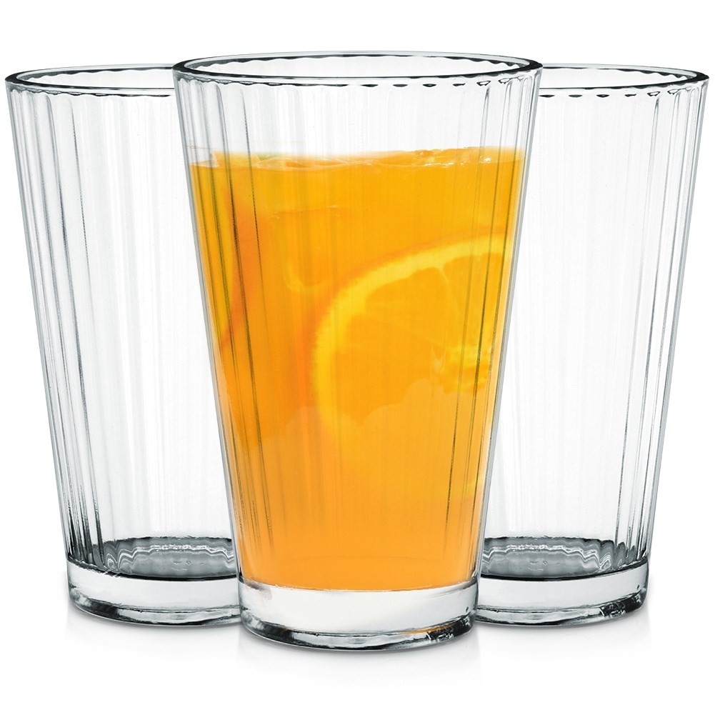 Ein Satz von drei, 270 ml Hochgläser. Aus dickem, transparentem Glas. Sie sind ideal für Wasser, Limonade, Getränke, Säfte und andere Getränke.