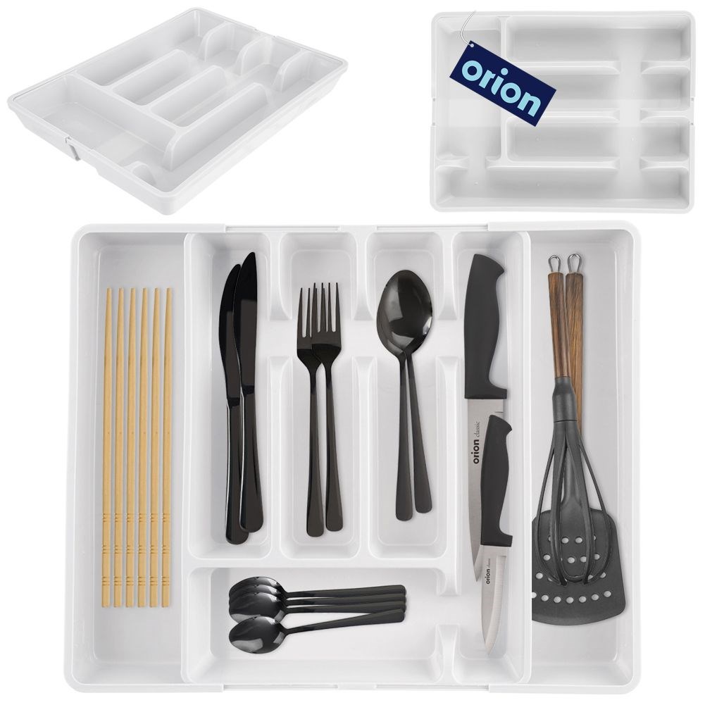Der verstellbare Besteckorganisator ist in jeder Küche nützlich. Sie können verschiedene Küchenzubehör wie Besteck, Messer oder andere kleine Gegenstände aufbewahren, die bestellt und organisiert sind. Mit der Schubladenschale können Sie den Raum ordnungsgemäß entwickeln und die Reihenfolge innerhalb der Schublade aufrechterhalten. Einfach zu sauber und bequem zu bedienen. Der Einsatz ist einstellbar, sodass Sie jede Schublade problemlos übereinstimmen können.Originalprodukt der tschechischen Marke ORION.Nach europäischen Standards hergestellt.