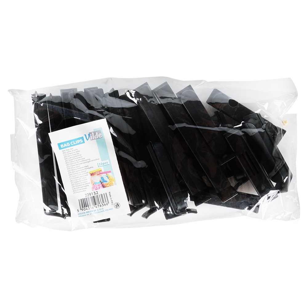 Set mit 22 Beutelverschlussklammern in zwei Größen. Die Clips bestehen aus strapazierfähigem Material, das eine langfristige Nutzung gewährleistet. Äußerst nützlich in jeder Küche. Mit ihrer Hilfe können wir Lebensmittelbeutel dicht verschließen. Dank der Beutelklammern fällt der Inhalt im Kühlschrank, in der Speisekammer oder in den Taschen nicht auseinander, was für Ordnung sorgt und Unordnung vermeidet.Original Vilde-Produkt.Hergestellt nach europäischen Standards.