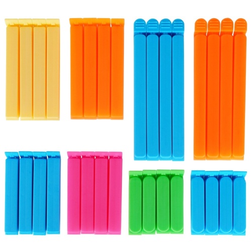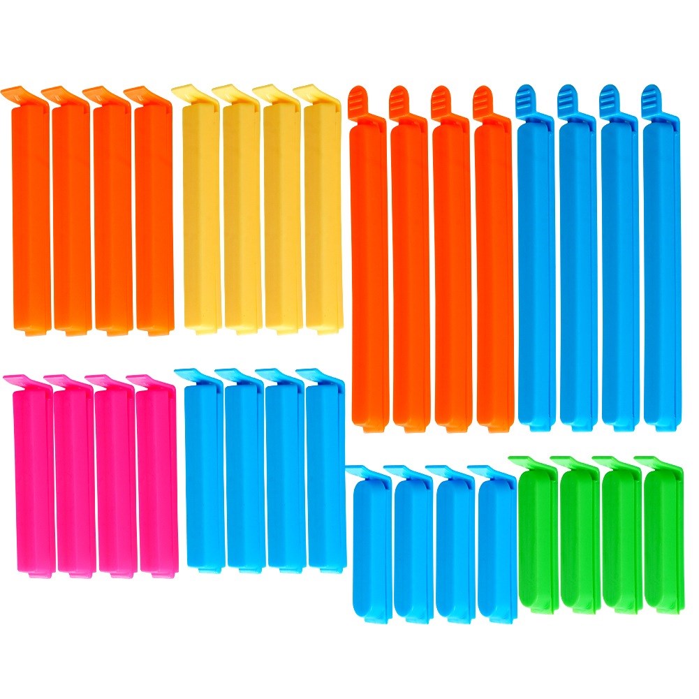 - Set mit 32 Taschenklammern in vier Größen- Ein Set aus 32 Plastikklammern, perfekt zum festen Verschließen von Lebensmittelbeuteln, damit die Produkte länger frisch bleiben. Das Set beinhaltet: 8 Clips mit den Maßen 15,5 x 1,5 cm, 8 Clips mit den Maßen 11 x 1,5 cm, 8 Clips mit den Maßen 9 x 1,5 cm und 8 Clips mit den Maßen 7 x 1,5 cm.