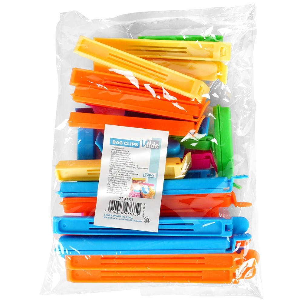 Ein Satz mit 32 Beutelverschlussklammern in vier Größen. Die Clips bestehen aus strapazierfähigem Material, das eine langfristige Nutzung gewährleistet. Äußerst nützlich in jeder Küche. Mit ihrer Hilfe können wir Lebensmittelbeutel dicht verschließen. Dank der Beutelklammern fällt der Inhalt im Kühlschrank, in der Speisekammer oder in den Taschen nicht auseinander, was für Ordnung sorgt und Unordnung vermeidet.Original Vilde-Produkt.Hergestellt nach europäischen Standards.