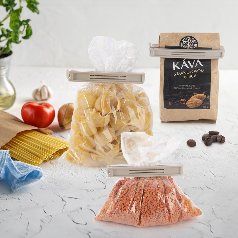 Set mit 4 Beutelverschlussklammern. Die Clips bestehen aus strapazierfähigem Material, das eine langfristige Nutzung gewährleistet. Äußerst nützlich in jeder Küche. Mit ihrer Hilfe können wir Lebensmittelbeutel dicht verschließen. Dank der Beutelklammern fällt der Inhalt im Kühlschrank, in der Speisekammer oder in den Taschen nicht auseinander, was für Ordnung sorgt und Unordnung vermeidet.Originalprodukt der tschechischen Marke Orion.Hergestellt nach europäischen Standards.