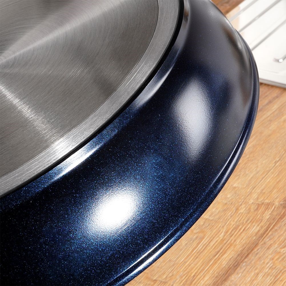 Bratpfanne mit Antihaftbeschichtung und abnehmbarem Griff mit rauer, keramischer Diamantbeschichtung mit Kristallstücken. Robust und stabil, ideal zum Braten und Schmoren.
