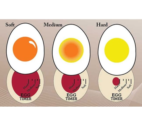 Eine spezielle Skala auf dem Timer zeigt an, bis zu welchem Punkt Sie die Eier kochen sollten, um die richtige Härte zu erreichen: