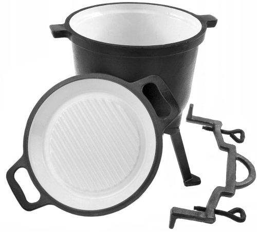 Emailliert Kazan Gusseisen Camping Topf 8L + Grillpfanne von ROSSNER