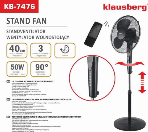 Freistehender Ventilator 40 cm mit Fernstuerung und Touch-screen KLAUSBERG KB-7476