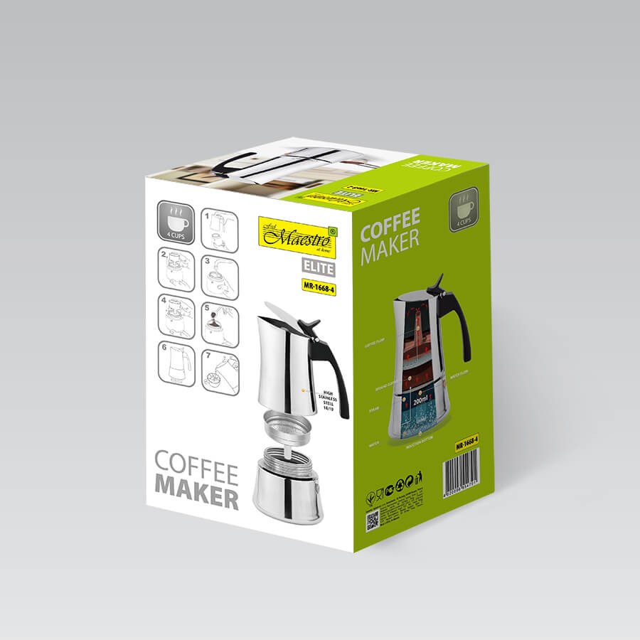 Gas-Induktionskaffeemaschine aus Stahl für 4 Tassen 200 ml MAESTRO MR-1668-4