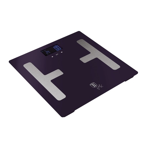 Superflache Personenwaage von BERLINGER HAUS aus der Serie PURPLE ECLIPSE. Eine Waage mit einer Fülle von Zusatzfunktionen wie der Messung von Körperfett, Wasser, Muskel- und Knochenmasse. Außerdem berechnet das Gerät den BMI-Index. Hergestellt aus gehärtetem Glas und Kunststoff. Waage mit einer maximalen Tragfähigkeit von 180 kg. Die Angaben werden auf einem großen Flüssigkristall-LCD-Display angezeigt. Dieses Modell zeichnet sich durch eine ästhetische Verarbeitung mit hochwertigen Materialien aus.