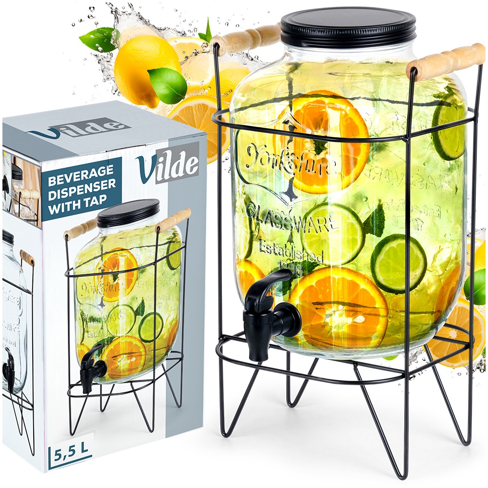 Ein Glas für Getränke mit einem Wasserhahn und einem 5,5 -l -VILDE -Schwarz -Rack