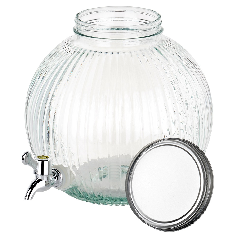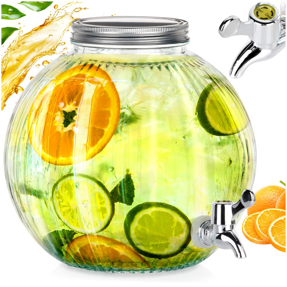 - Glas mit einem Wasserhahn für Getränke- Distributor für Getränke mit einer Kapazität von 5,5 l. Ideal zum Servieren von Limonade an heißen Tagen, Schlag oder Saft während einer Party. Das Glas hat eine effektive, runde Form mit einem Durchmesser von 23 cm und einer Höhe von 23 cm.