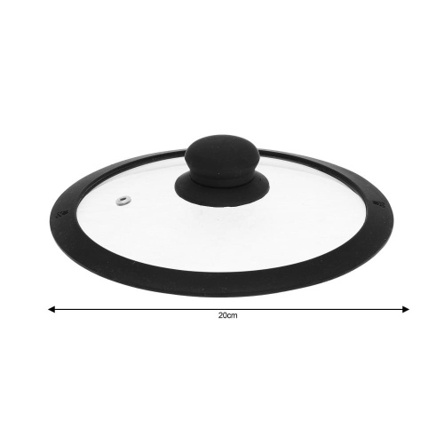 Aus gehärtetem Glas, mit hitzebeständiger Silikonumrandung und Silikon-Griff und mit einem Entlüftungsventil.