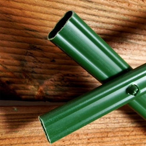 Gartenstütze in Form eines faltbaren Gitters aus grünem Kunststoff. Es eignet sich für den Anbau von Kletterpflanzen, die eine angemessene Unterstützung benötigen.