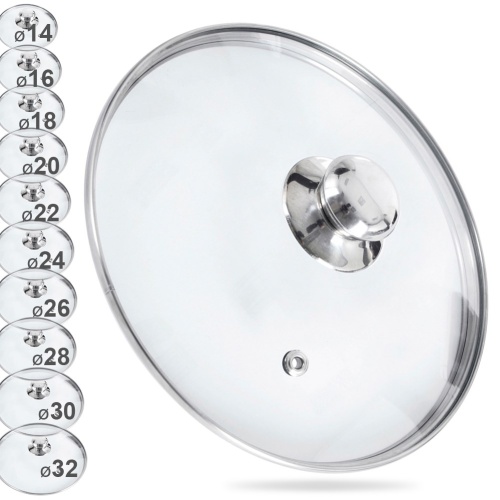 - UNIVERSAL- Glasabdeckung mit Stahlrand und Rand. Der Deckel hat einen Durchmesser von 28 cm. Der Deckel kann für alle Arten von Töpfen, Pfannen und Kochtöpfen verwendet werden.